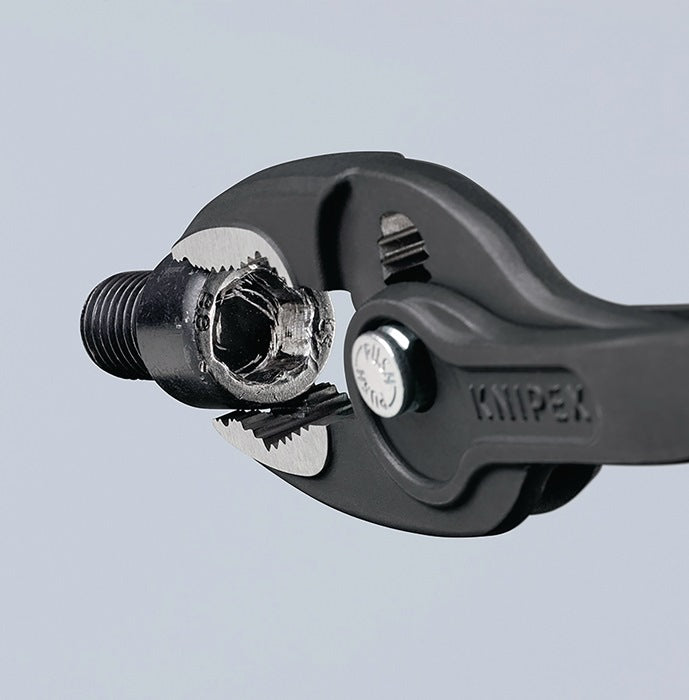 Funkcja chwytania z przodu i z boku - wytrzymały przegub skrzynkowy - regulacja przyciskiem - bardzo wąskie szczypce - wytrzymałe zęby - wysoki współczynnik przełożenia na końcu szczęki - do średnic i szerokości kluczy 4 - 22 mm - przegub przesuwny regulowany w pięciu płaszczyznach - zabezpieczenie przed przytrzaśnięciem Szczypce atramentowane na czarno - polerowana główka