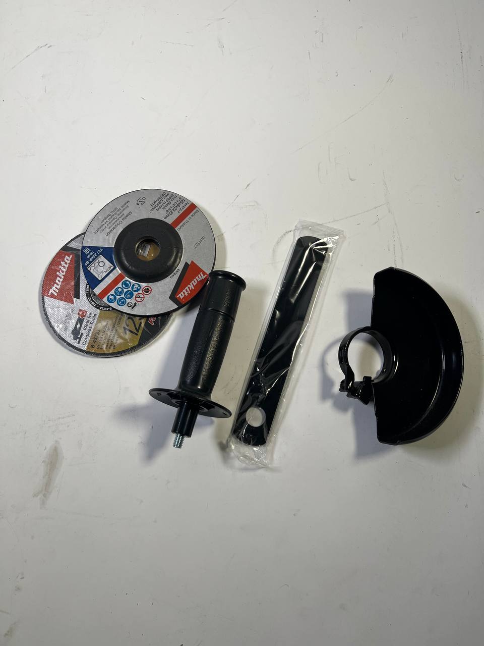- 1x szlifierka kątowa Makita 9558 HNR - 1x osłona ochronna ( 122911-0 ) - 1x uchwyt boczny ( 153489-2 ) - 1x klucz czołowy ( 782423-1 ) - 1x tarcza do obróbki zgrubnej - 5x tarcza tnąca