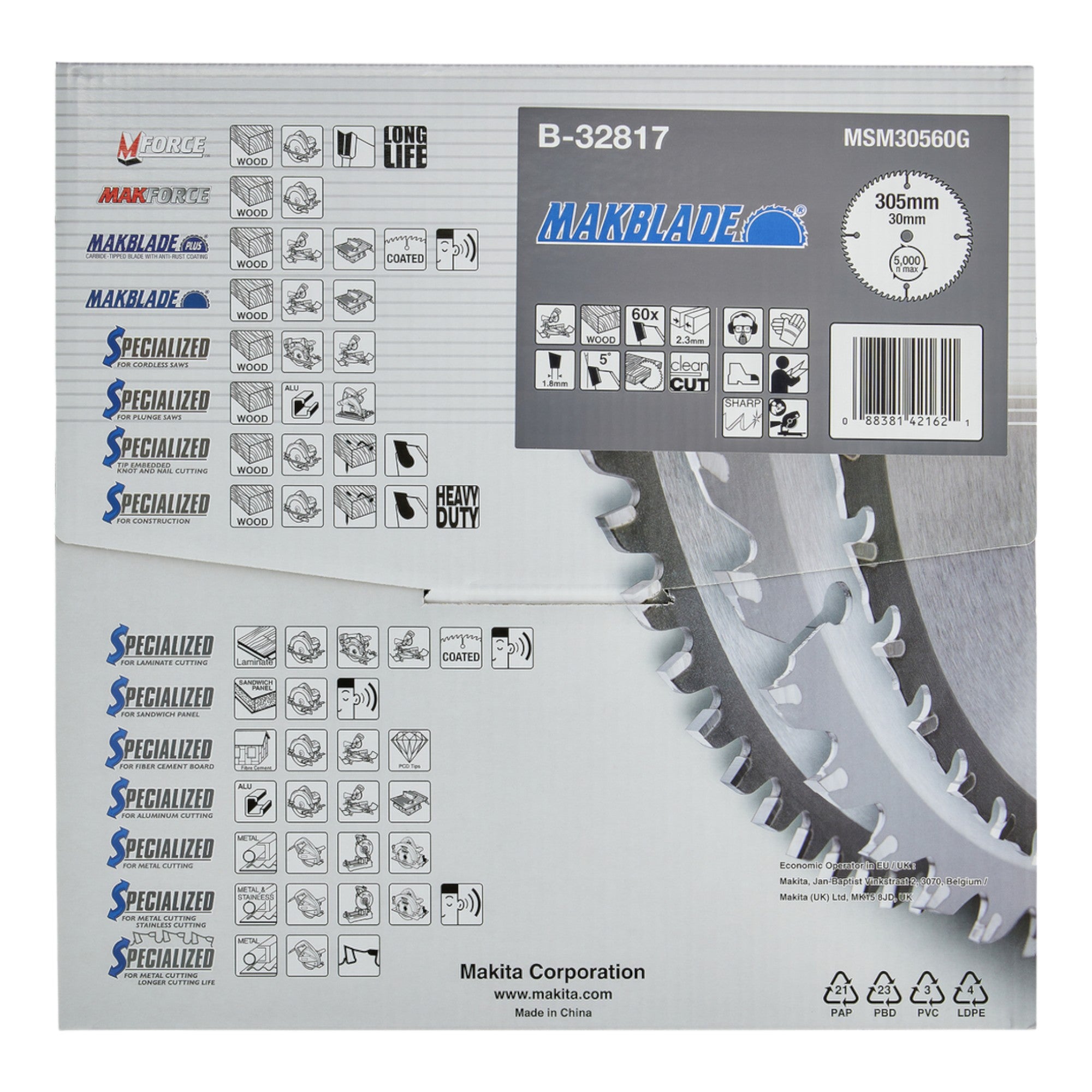 - 1x Tarcza pilarska Makita MAKBLADE 305 x 30 x 2,3 mm 60 zębów ( B-32770 )