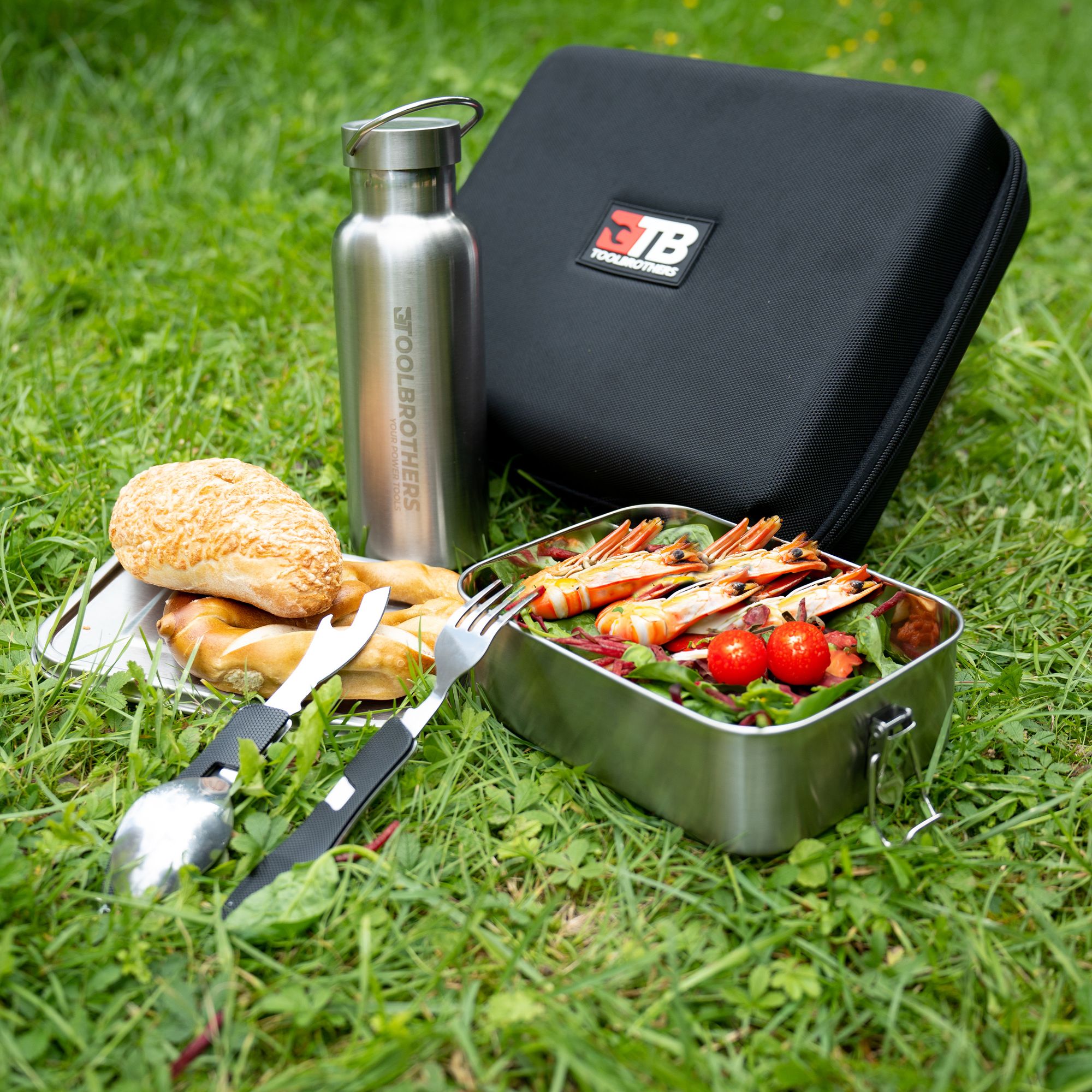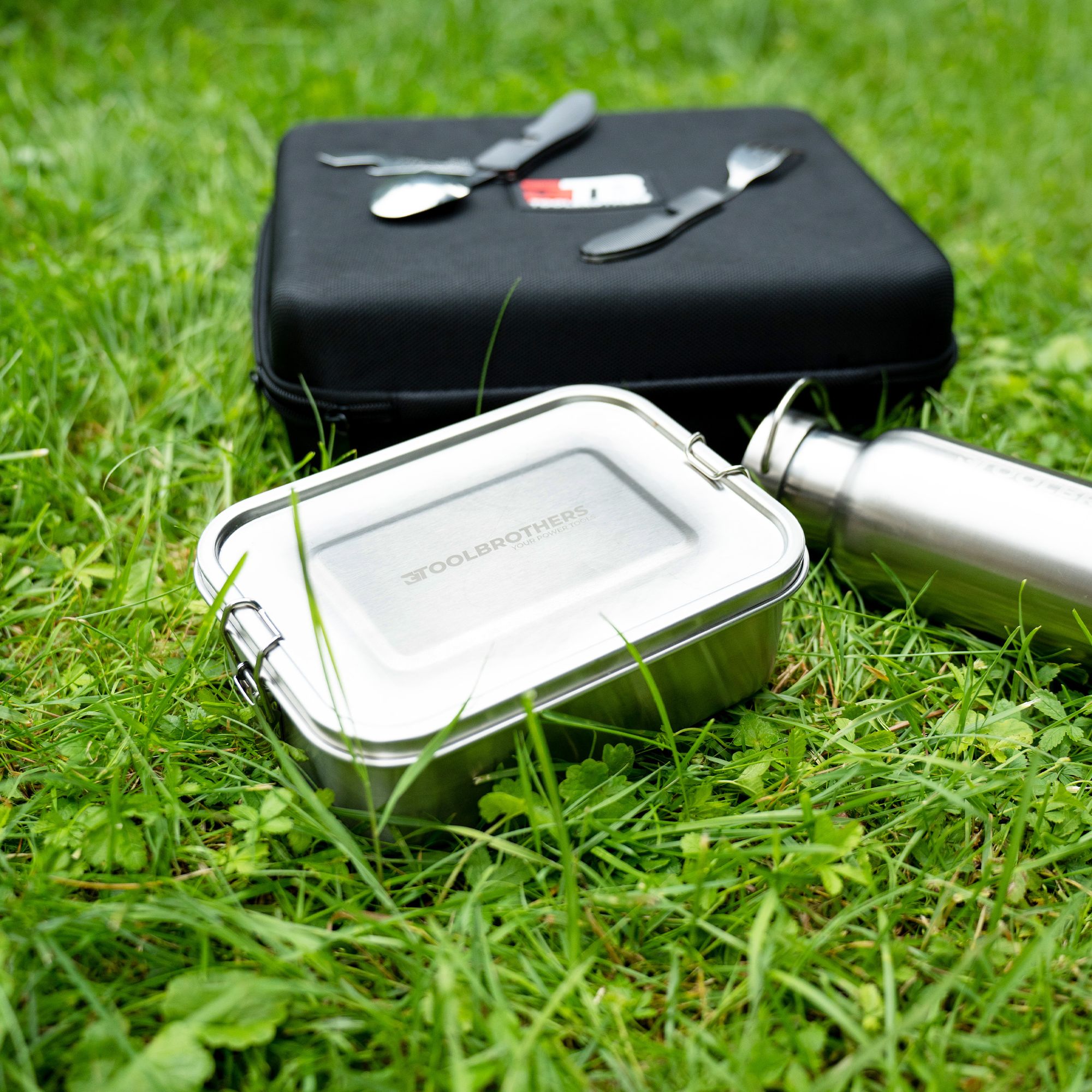 Toolbrothers Fan Lunch Pack in Hardcase Carry Bag Wodoodporna torba na lunch z pojemnikiem ze stali nierdzewnej z przegrodami i pokrywką ze stali nierdzewnej 1200 ml + butelka ze stali nierdzewnej 600 ml + wielofunkcyjne sztućce 4 w 1