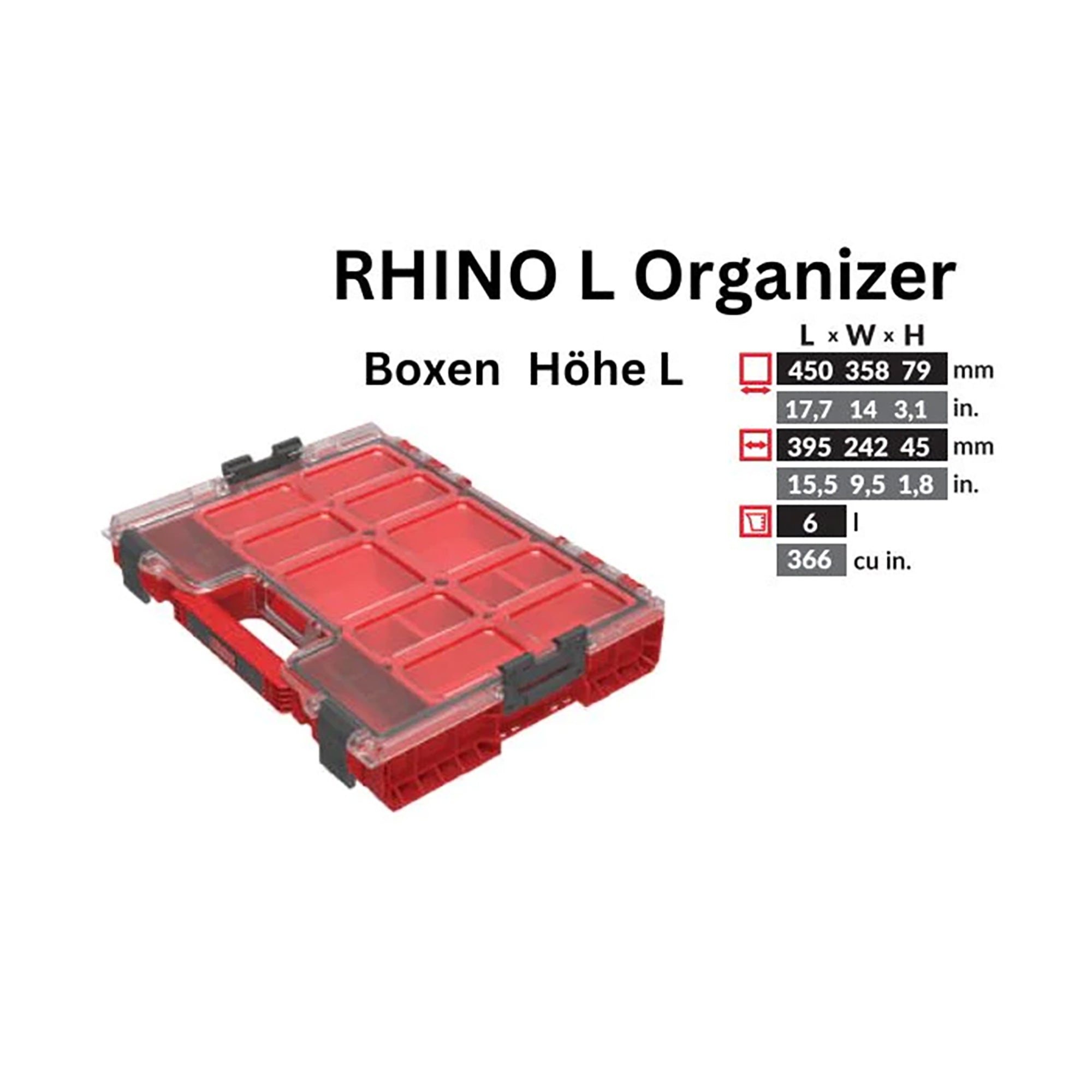 Toolbrothers RHINO L Organizer ULTRA wysokość skrzynek L 6 l IP54 z wyjmowanymi skrzynkami