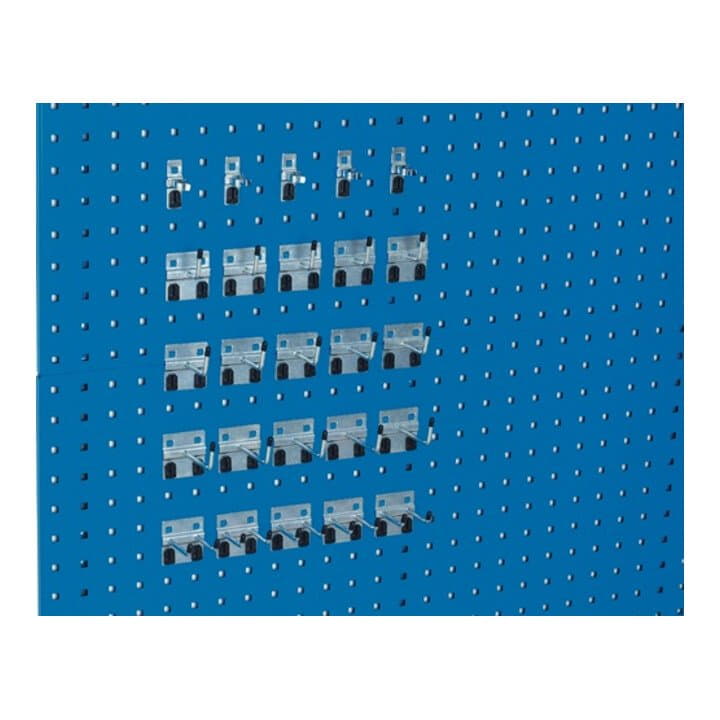 - 15 haków, 5 podwójnych haków, 5 pojedynczych zacisków narzędziowych Dostarczany bez perforowanej płyty