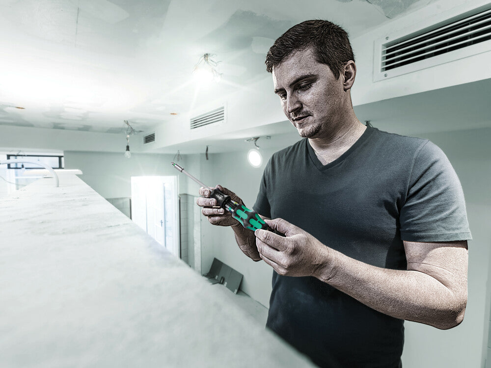 ze zintegrowanym magazynkiem na bity - magnetyczny uchwyt na bity - wielokomponentowa rękojeść Kraftform - sześciokątny grot - bity z systemem kodowania kolorami - pasuje do bitów o średnicy 6,3 mm (1/4") - napęd sześciokątny C 6,3 - Zawartość 1 uchwyt na bity ze zintegrowanym magazynkiem na bity i wielokomponentową rękojeścią Kraftform 1 bit (ze strefą BiTorsion, twardy) do wkrętów z wgłębieniem krzyżowym (PH), rozmiar 1 / 2 1 bit (ze strefą BiTorsion, twardy) do wkrętów z wgłębieniem krzyżowym (PZD), rozmiar 2 1 / 2 1 bit (ze strefą BiTorsion, twardy) do wkrętów z wgłębieniem krzyżowym (PZD), rozmiar 2 1 bit (ze strefą BiTorsion, twardy) do wkrętów z wewnętrznym profilem TORX®, rozmiar T 20 / 25 1 bit do wkrętów z rowkiem 5,5 mm