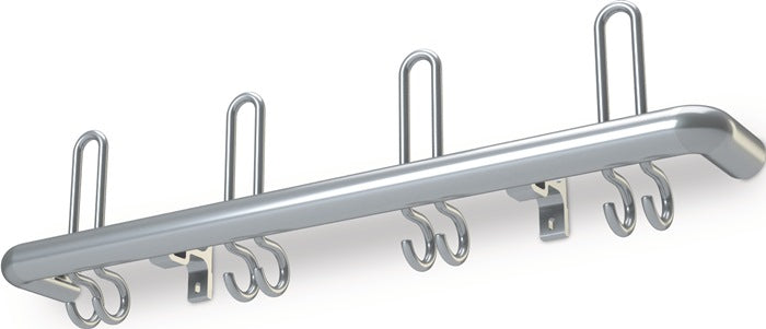 Wieszak aluminiowy Ø 40 mm - z zakrzywionymi zaślepkami - z aluminiowymi potrójnymi hakami, rozstaw haków ok. 200 mm - hak Ø 10 mm - znak GS firmy LGA Nuremberg