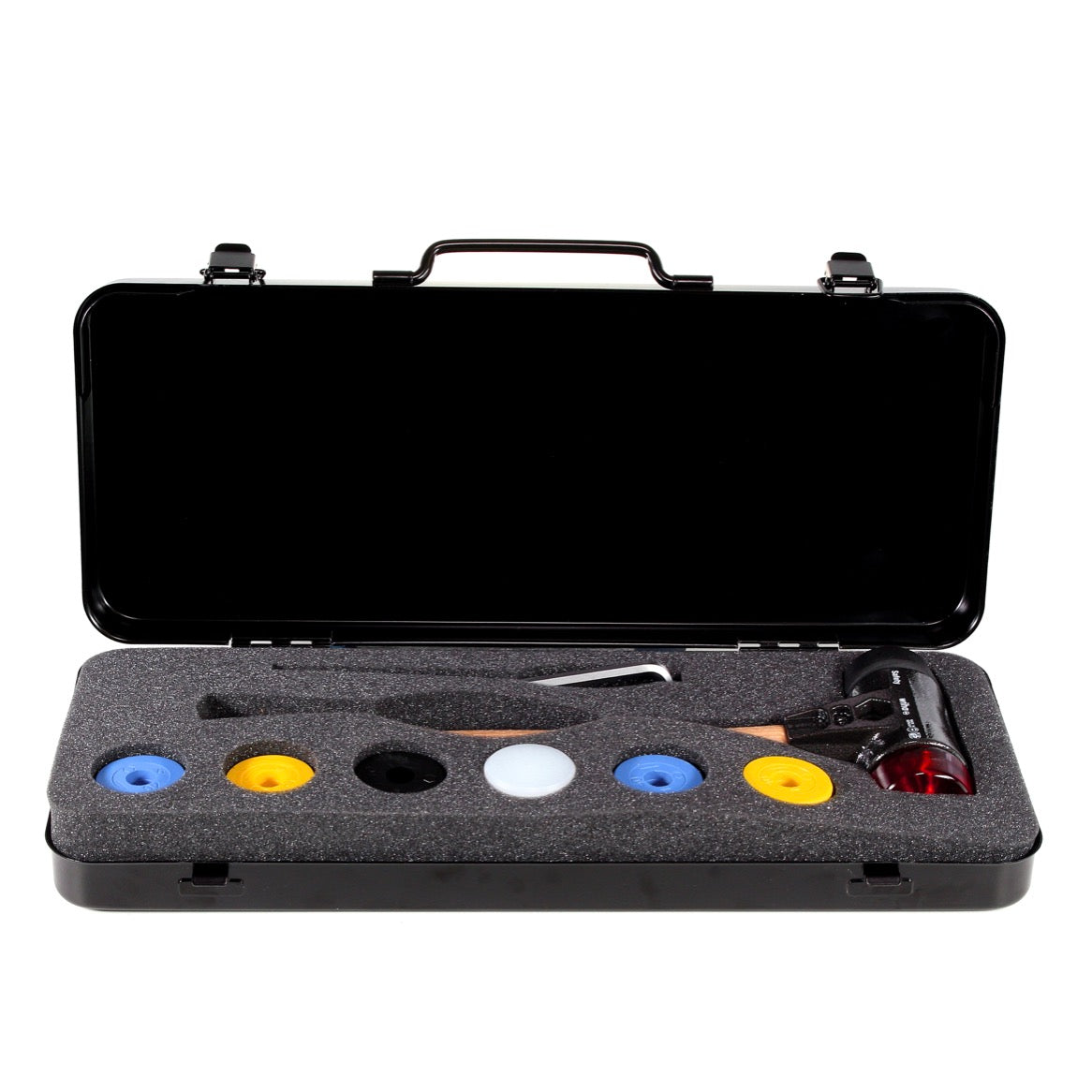 In der Industrie und im Handwerk werden oft unterschiedlich harte Hammerköpfe für verschiedene Anwendungen benötigt. Mit dem Schonhammer-Set Safety ist man für alle Anwendungen bestens ausgerüstet. So beinhaltet das Hammer-Set acht austauschbare, unterschiedlich harte Schlagköpfe in runder wie auch eckiger Form. Mithilfe des beiliegenden Sechskant-Stiftschlüssels können diese Hammerköpfe je nach Anwendungsfall schnell und einfach gewechselt werden. Dank der Vierkant-Schlagköpfe können auch Schläge an Ecken und Kanten optimal ausgeführt werden. Mit dem Schonhammer lassen sich sowohl dosierte Einzelschläge auf empfindliche Materialien wie weiche Hölzer, Kunststoffe oder Aluminium als auch kräftige Schläge in Gießerein und der Schwerindustrie ausführen. Weiterhin besticht der Safety Hammer durch seinen hochwertigen Hammerstiel aus Hickory-Holz mit besonders griffiger Oberfläche. Der Hammer und die Schlagköpfe sind in einer robusten und stabilen Box verstaut. Alle Komponenten im Set können als Ersatzteil nachgekauft werden.