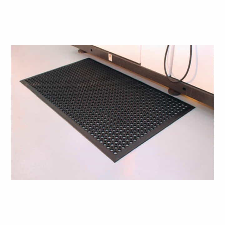 Wszechstronna i ekonomiczna mata przeciwzmęczeniowa do suchych przemysłowych stanowisk pracy stojącej - guma SBR z perforowaną powierzchnią - odporność na temperaturę od -20 °C do +130 °C - grubość maty 10 mm - odporność na poślizg R10 zgodnie z EN 13552 - kolor czarny
