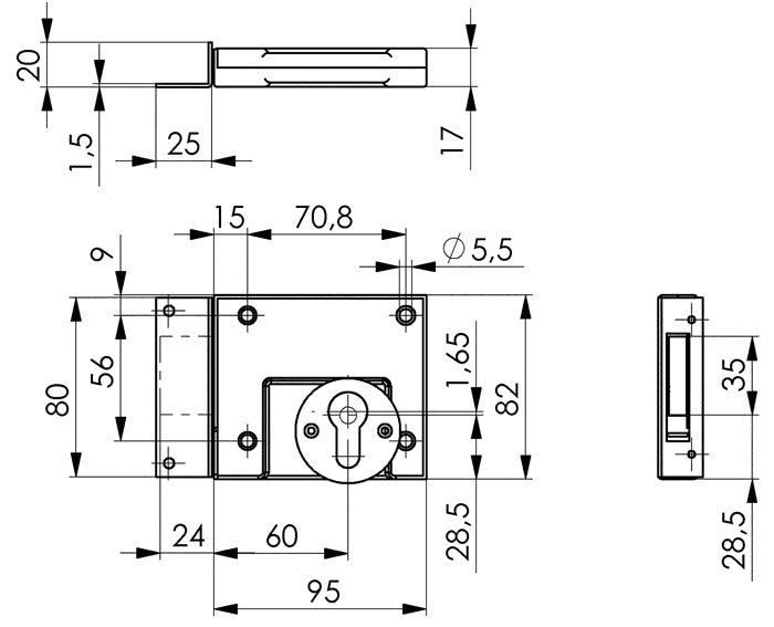 - 1x AMF bolt lock DIN lewy / prawy PZ
