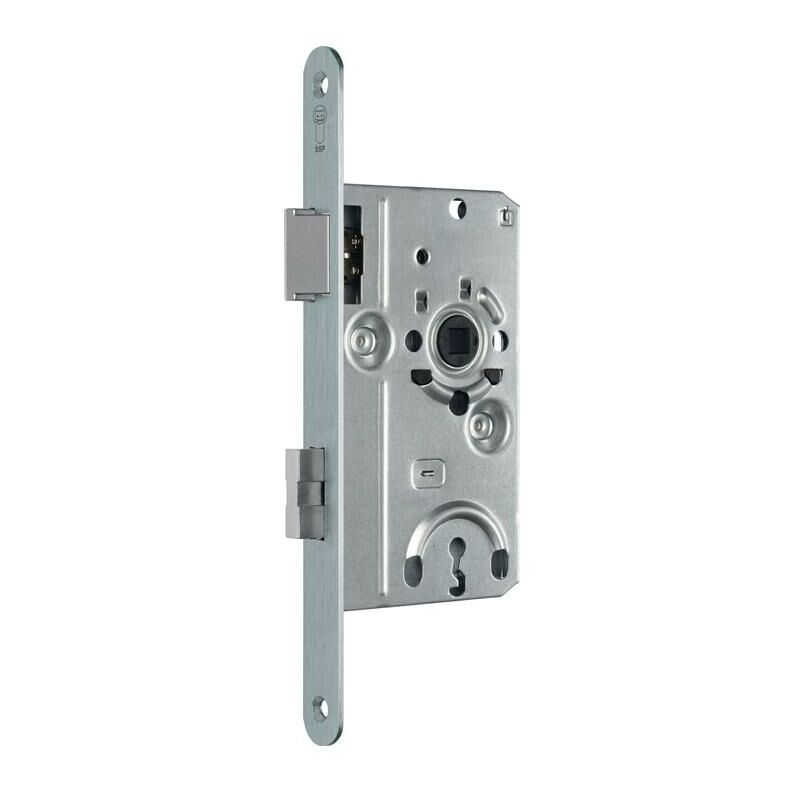 Wersja BB - wg DIN 18251-1 klasa 1 - obudowa zamka zamknięta ze wszystkich stron - jednostronny - zaokrąglony - czoło aluminiowe wykończenie srebrne - długość czoła 235 mm - rozstaw 55 - rozstaw 72 mm - kwadrat 8 mm - zapadka i rygiel z tworzywa sztucznego - bez blachy zaczepowej