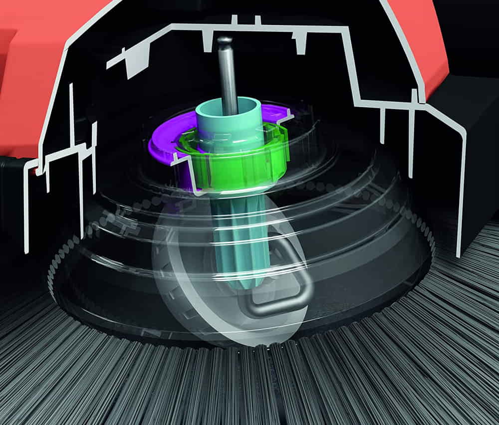 do użytku wokół domu i w mniejszych obiektach komercyjnych (do 500 m²) - system zamiatania turbo - szczotki tarczowe wystające po obu stronach z walcem bocznym po jednej stronie do zamiatania blisko krawędzi - nie posiada walca zamiatającego - bezstopniowa regulacja wysokości szczotki
