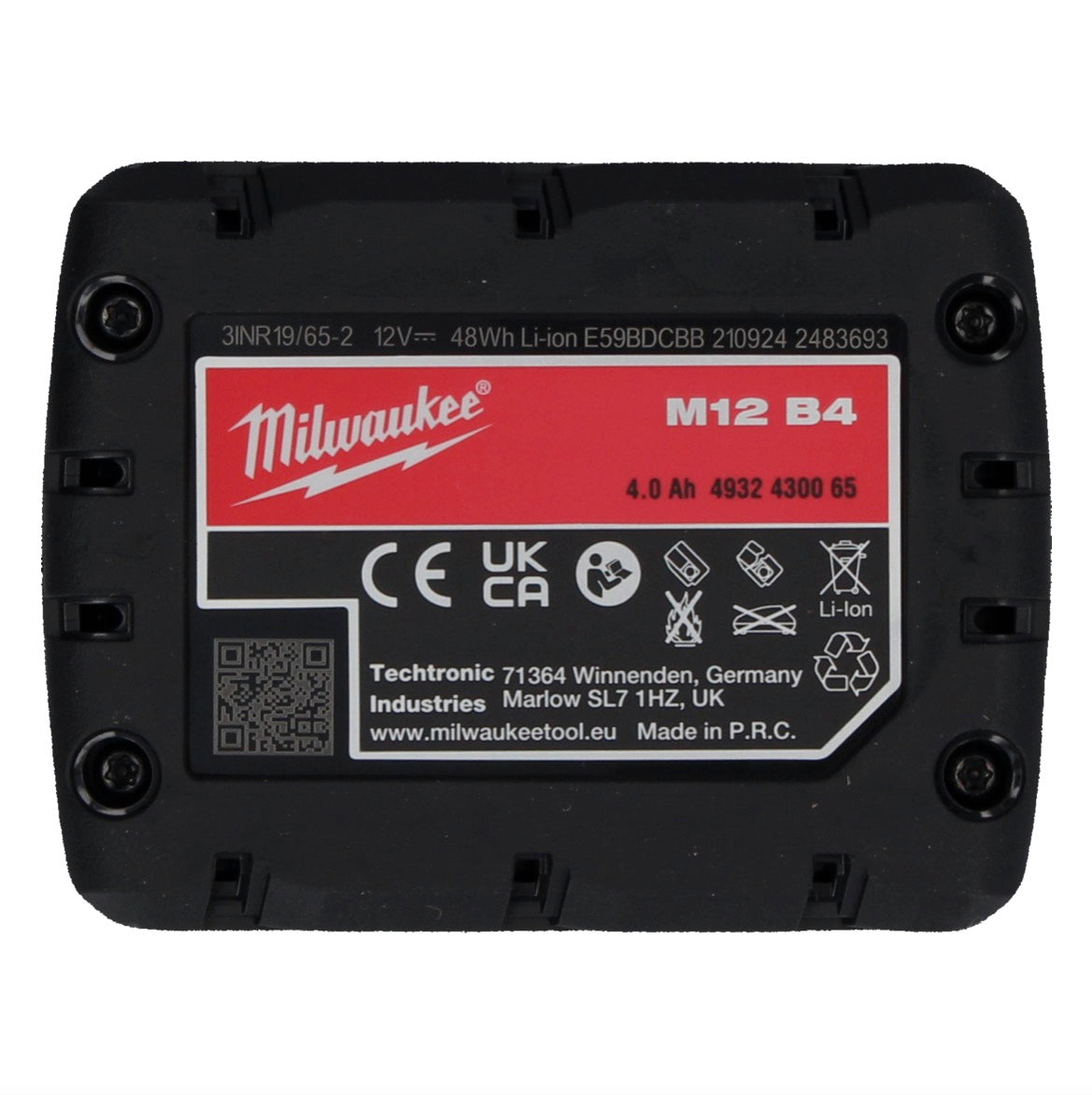 - 3x Wsuwany akumulator litowo-jonowy Milwaukee M12 B4 12 V 4,0 Ah / 4000 mAh
