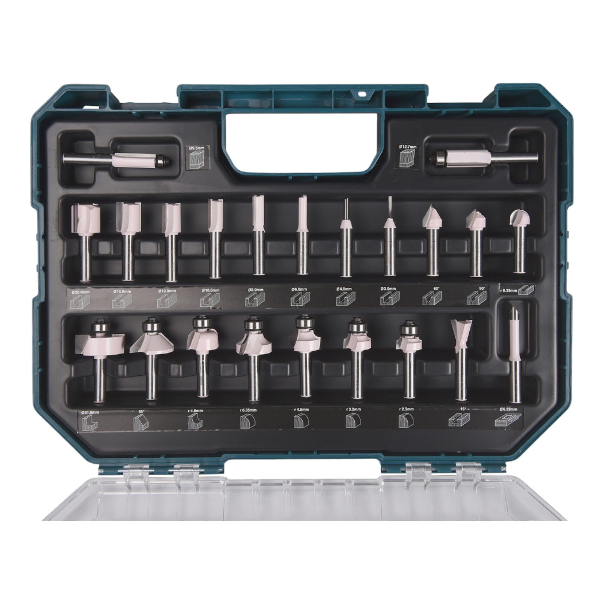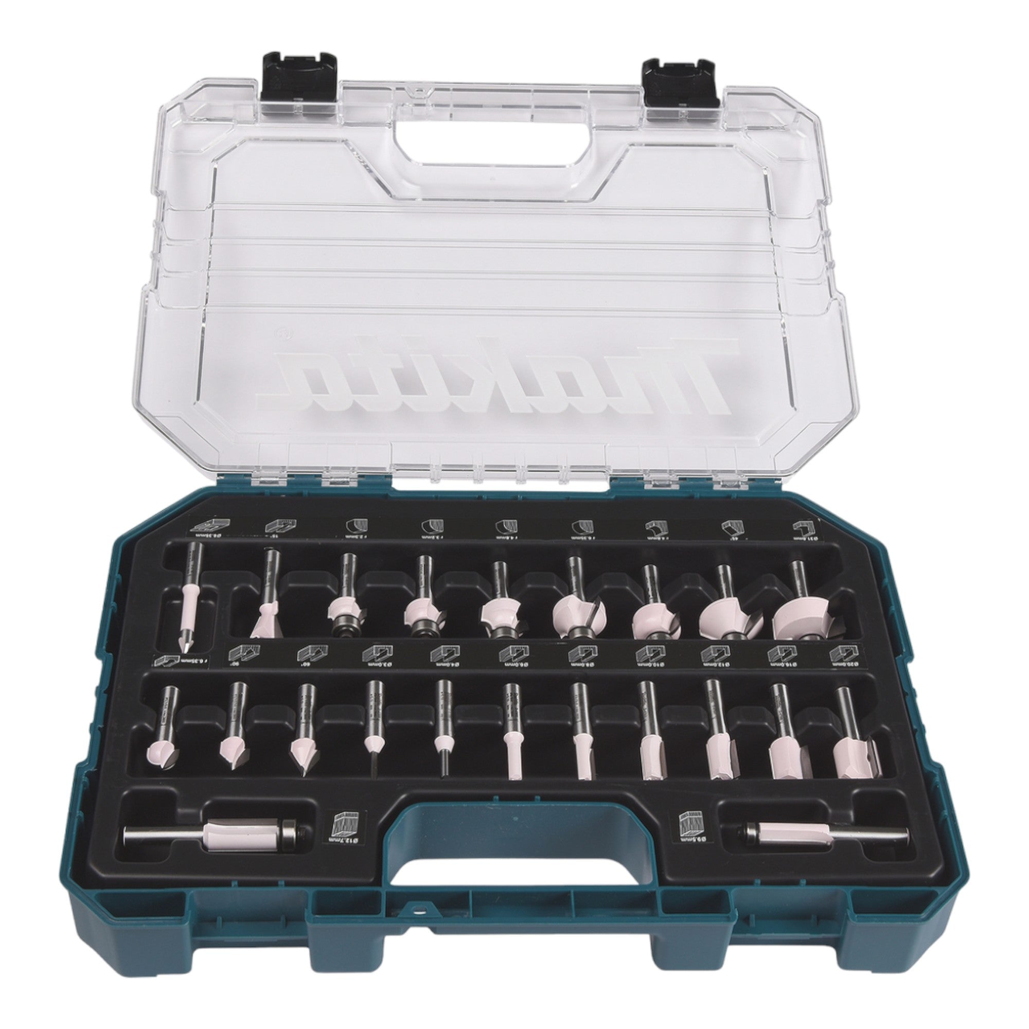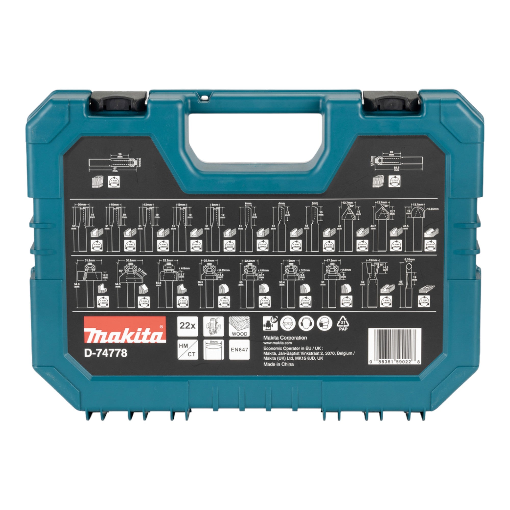 Zestaw frezów Makita (D-74778) 22 szt. z trzpieniem 8 mm do produkcji mebli, prac stolarskich, ciesielskich i majsterkowania