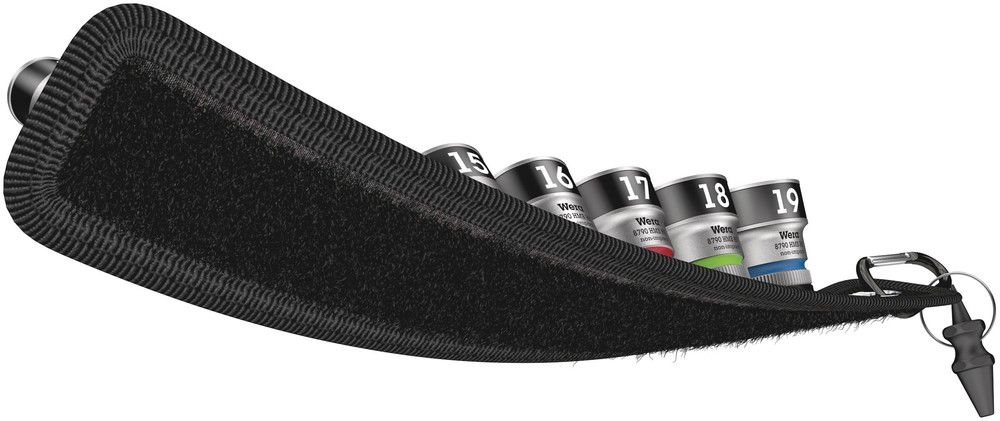 Napęd kwadratowy 6,3 mm (1/4″) - wytrzymały pasek tekstylny z karabińczykiem - podkładka z włókniny i paski na rzep ułatwiające mocowanie, np. do półek, wózków warsztatowych i systemu transportu narzędzi Wera 2go - płynnie działający mechanizm obrotowy do bezpiecznego przechowywania i łatwego wyjmowania