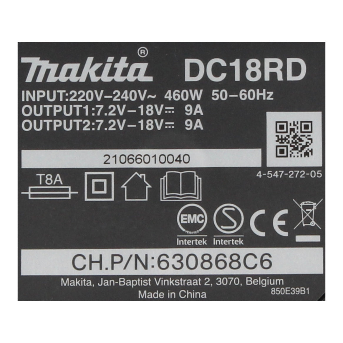 - 1x Makita DC 18 RD podwójna szybka ładowarka 14,4 V - 18 V LXT ( 196933-6 )