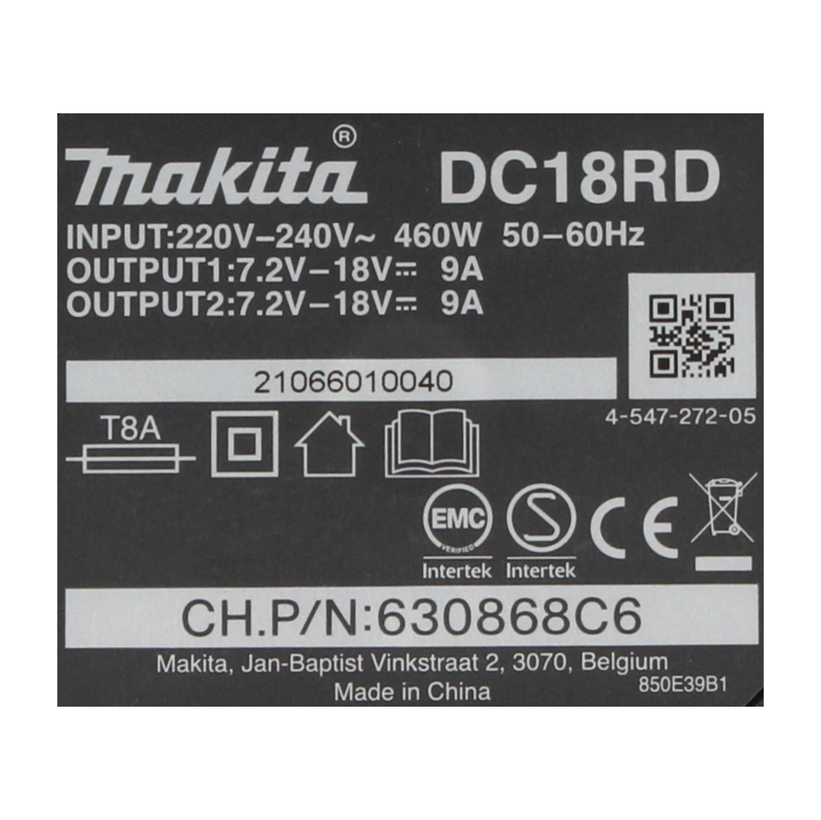 - 1x Makita DC 18 RD podwójna szybka ładowarka 14,4 V - 18 V LXT ( 196933-6 )