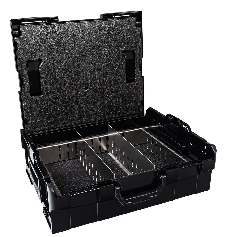 Zestaw dzielników 3F LB 136 to idealne rozwiązanie do elastycznego podziału L-BOXX i górnej komory LS-BOXX. Ten zestaw z możliwością doposażenia jest wykonany z wysokiej jakości aluminium i umożliwia podział na maksymalnie 3 przedziały. Dzięki szybkiemu i łatwemu montażowi, zestaw przegródek jest idealny do przechowywania narzędzi, materiałów lub małych części w przejrzysty i zorganizowany sposób. Dzięki zestawowi przegródek zawsze masz wszystko pod ręką i oszczędzasz cenny czas w pracy.