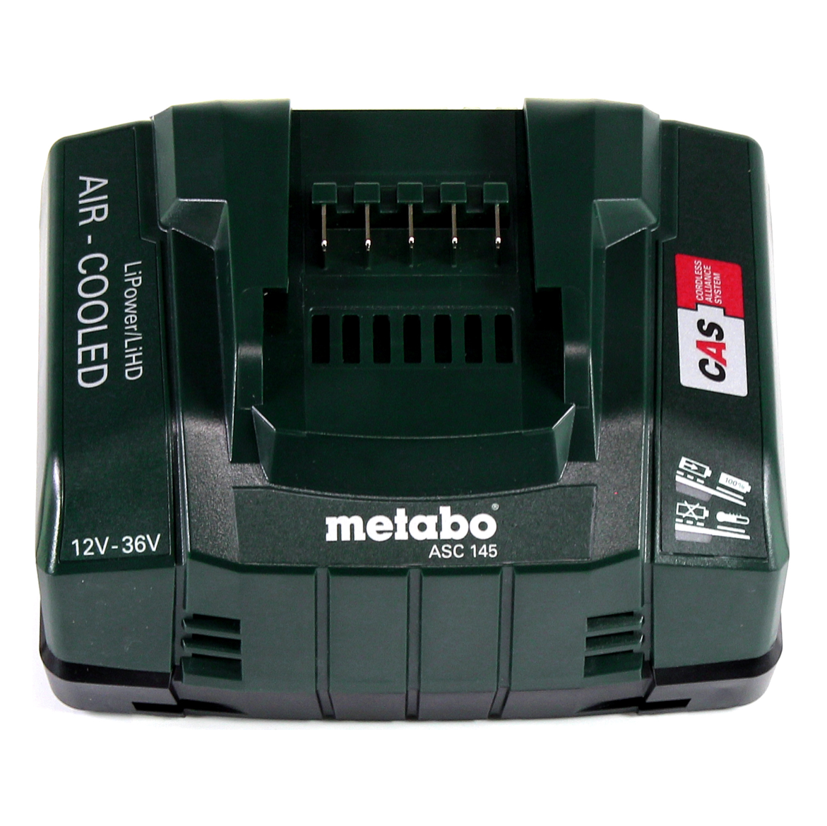 - 2x akumulator Metabo Li-Power 5,2 Ah ( 625028000 ) - 1x ładowarka Metabo ASC 145 ( 627378000 ) - 1x Metabo MetaLoc - 1x pasująca wkładka