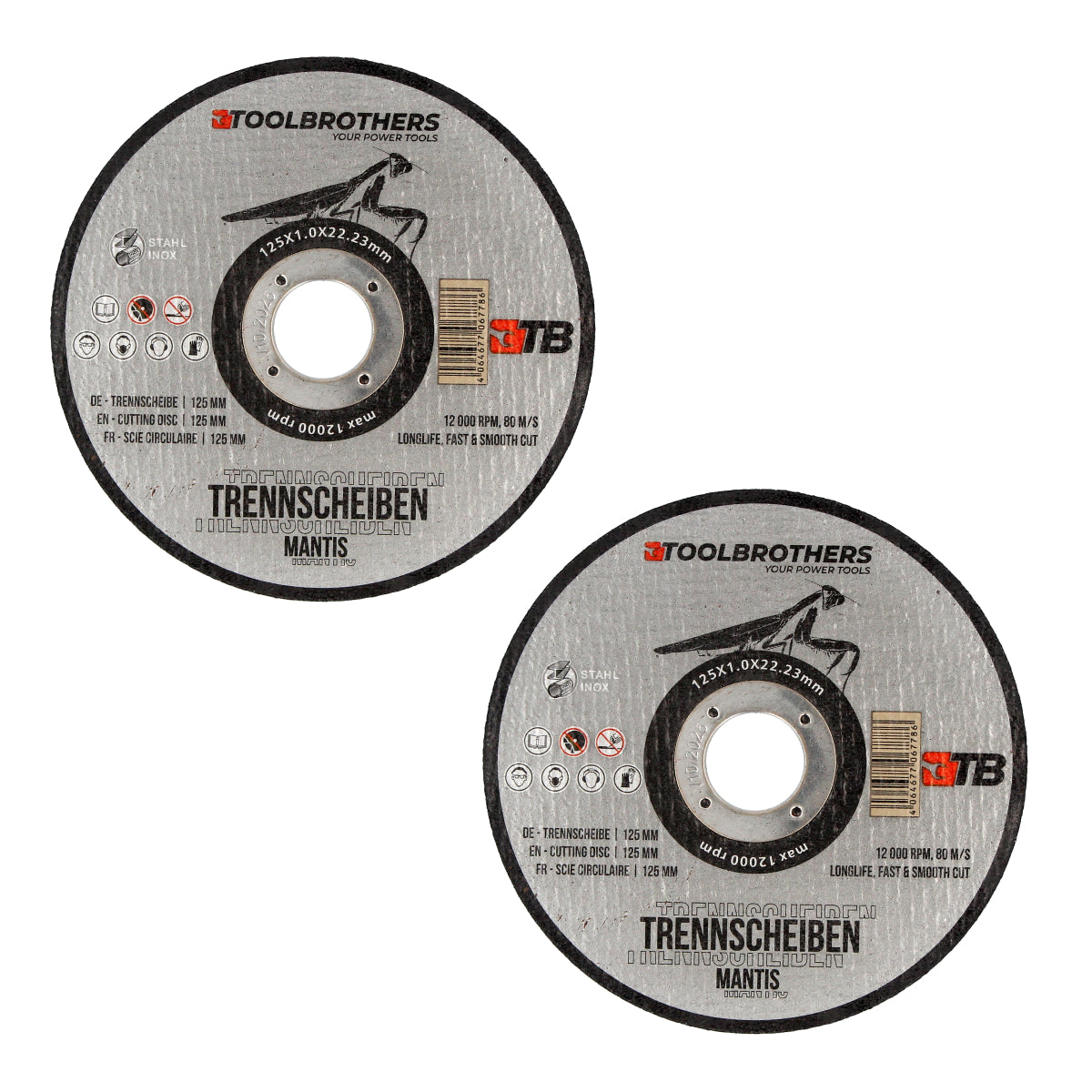Zestaw tarcz tnących Toolbrothers MANTIS w profesjonalnej jakości 2 opakowania po 50 sztuk, 125 x 22,23 x 1 mm do obróbki metalu, stali, stali nierdzewnej / INOX do szlifierek kątowych
