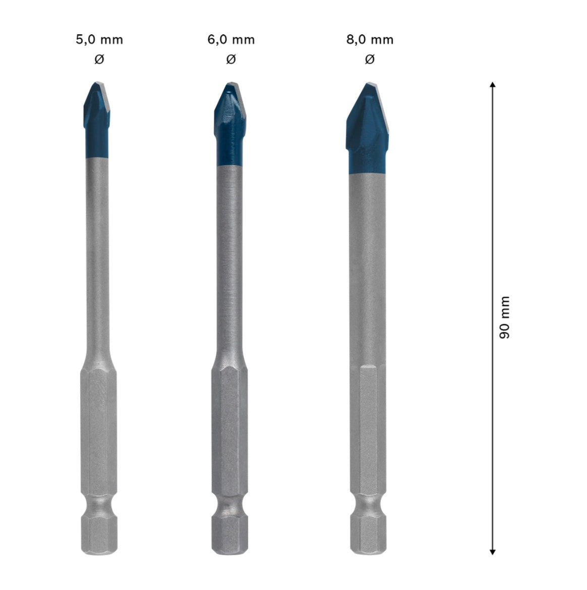 - 3x Wiertła Bosch EXPERT HardCeramic HEX-9 90 mm ( 5,0 / 6,0 / 8,0 mm )