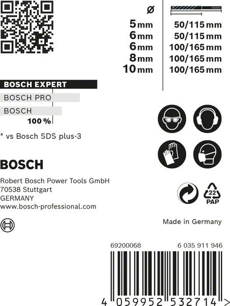 Dzięki technologii Bosch Carbide zestaw wierteł udarowych Bosch EXPERT SDS Plus-7X oferuje bardzo sprężystą końcówkę wiertła. Skutkuje to wyjątkową żywotnością w betonie zbrojonym. Dzięki temu są one jeszcze bardziej wytrzymałe, nawet do 3 razy dłużej niż standardowe wiertła. Dzięki czteroostrzowej głowicy z węglików spiekanych można z łatwością penetrować beton zbrojony. Ponadto uchwyt SDS Plus zapewnia maksymalne przenoszenie mocy i wygodną wymianę wierteł w ciągu kilku sekund, a dzięki systemowi uchwytów niezależnemu od producenta może być używany z wieloma maszynami. Seria Bosch EXPERT to najbardziej innowacyjne akcesoria do elektronarzędzi o sprawdzonych zaletach, które umożliwiają każdemu profesjonalnemu rzemieślnikowi pracę z maksymalną wydajnością. Niezwykle długa żywotność, maksymalna precyzja, praca na najwyższych obrotach i bezpyłowe szlifowanie: wszystko to jest możliwe dzięki Bosch EXPERT.
